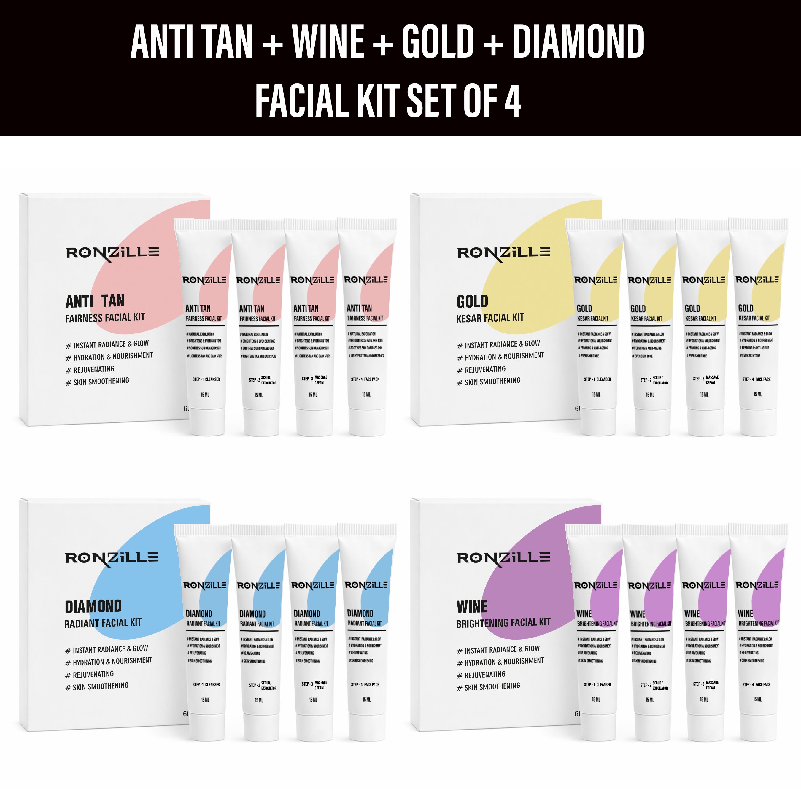 Ronzille Non Transfer Matte Liquid Lipstick plus Lip Gloss Pack of 4